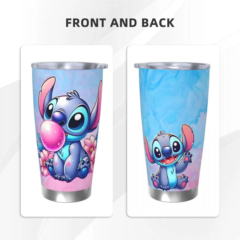 Cartoon Kawaii Stitch Insulated Tumbler with Lid Stainless Steel Thermal Mug Office Home Car Bottle Cup, 20oz