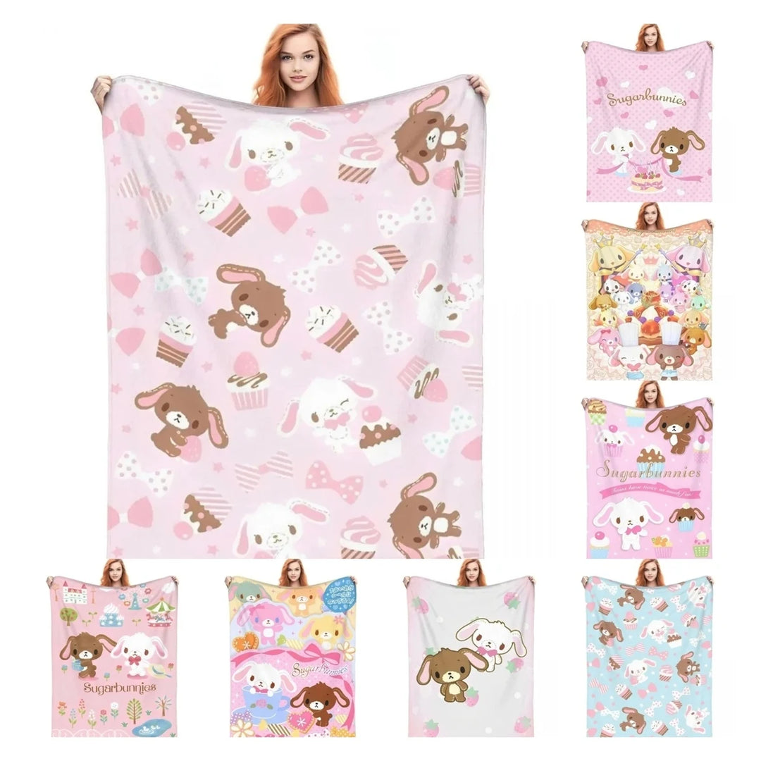 Cartoon Sugarbunnies Flannel Throw Blanket Blanket for Sofa Couch Super Warm Plush Thin Quilt