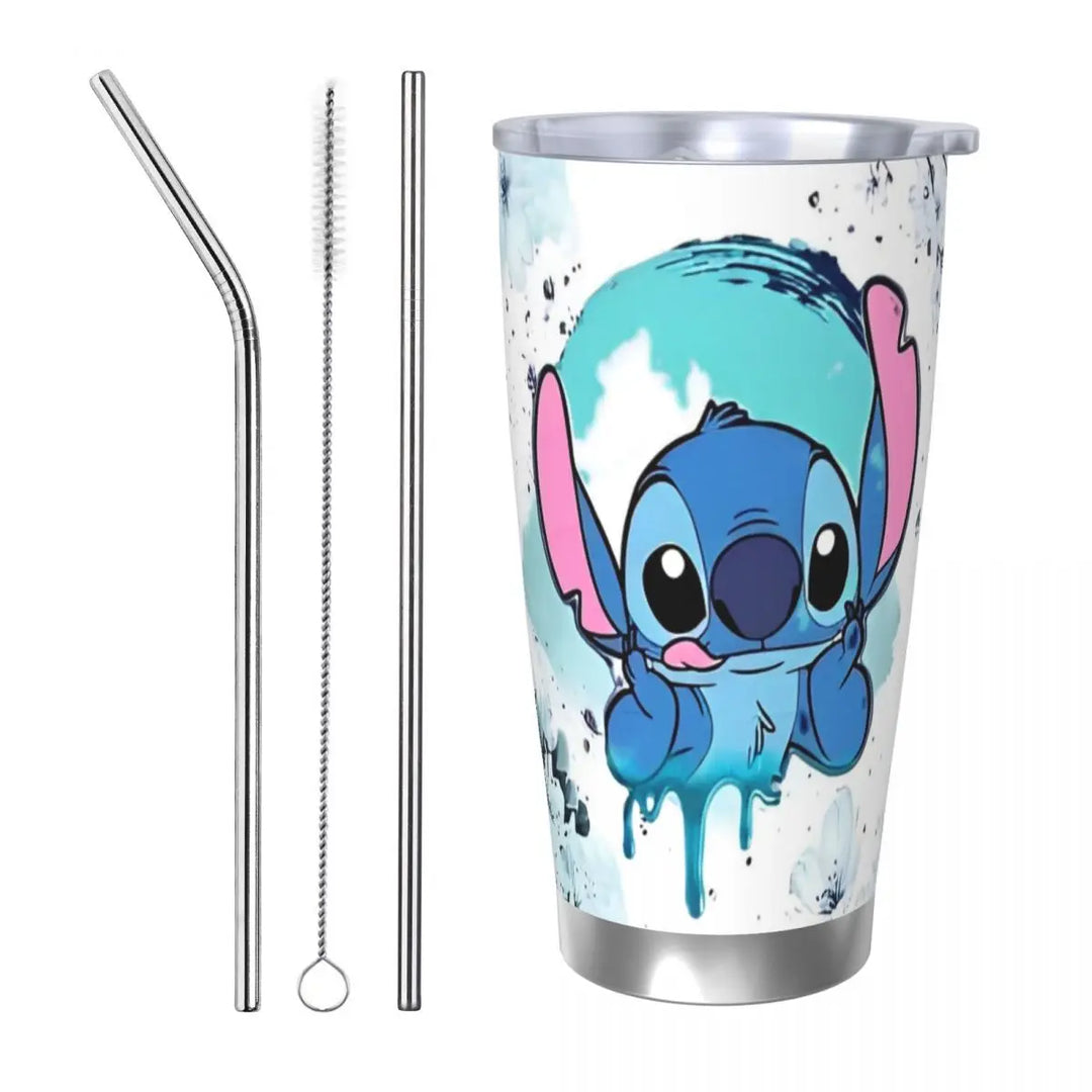 Cartoon Stitch Anime Tumbler Vacuum Insulated Thermal Cup with Lid Straw Double Wall Mugs Water Bottle, 20oz