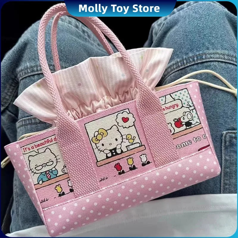 In Stock Hello Kitty Summer Series Cute Girl Handbag Makeup Storage Bag Shoulder Bag Gifts Canvas Bag Casual Versatile