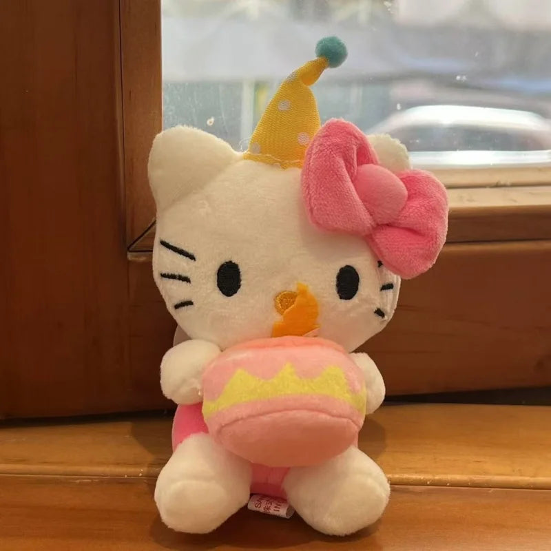 Kawaii Sanrio Hello Kitty Plush Pendant Birthday cake Love heart Collection kitty toys Plush Doll Keychain Anime cute Key Ring
