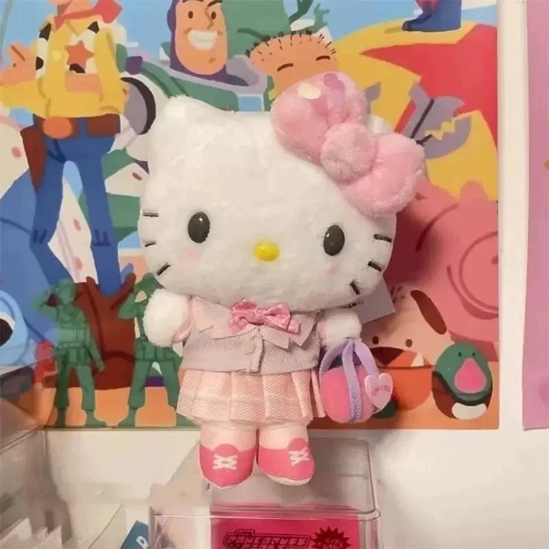 Kawaii Sanrios Anime My Melody Hello Kittys 12Cm Heisei Spicy Girl Style Plush Doll Keychain Y2K Bag Pendant Girl's Heart Gifts