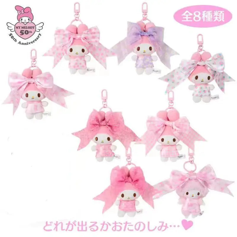 Kawaii Sanrio My Melody 50Th Anniversary Love Rainbow Plush Bag Pendant Doll Keychain Decoration Girls Birthday Creative Gift