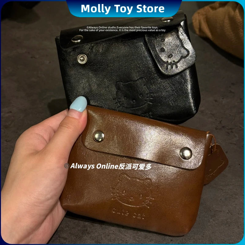 Sanrio Hello Kitty Classic Coin Purse Cortex Short Wallet Retro Storage Bag Anime Peripheral Id Set Storage Bag Student Wallet