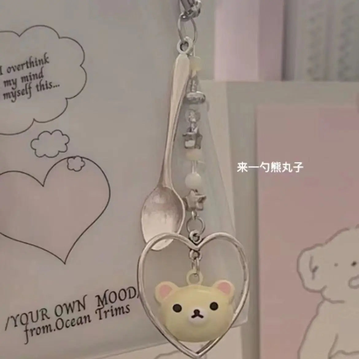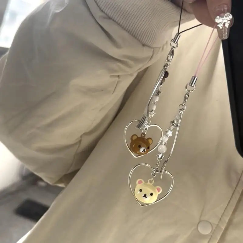 Kawaii Rilakkuma Mobile Phone Chain Cute Cartoon Bead Ccd Camera Pendant Y2K Backpack Decoration Boys and Girls Birthday Gifts