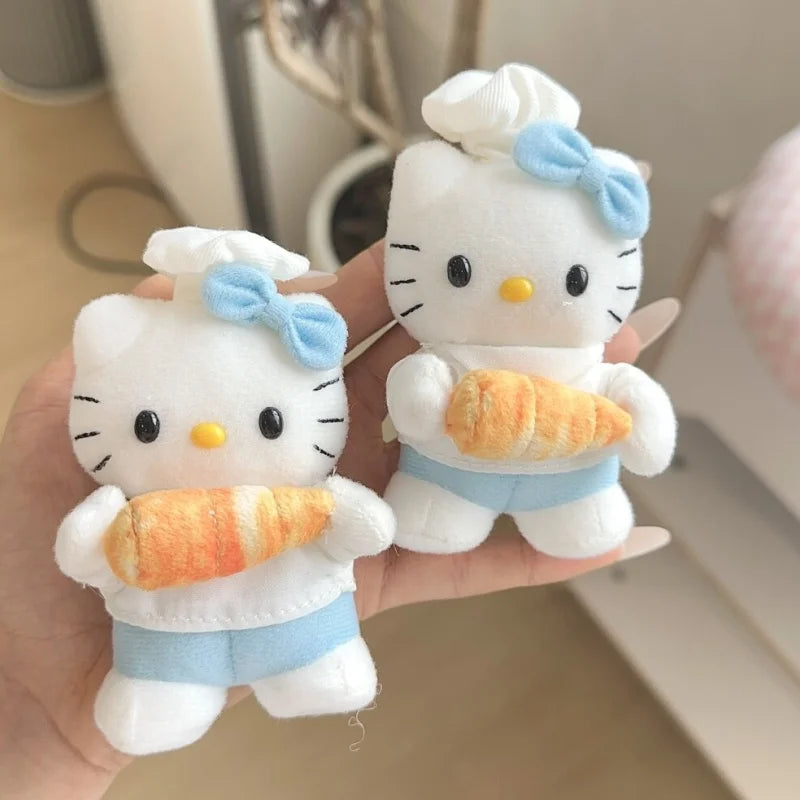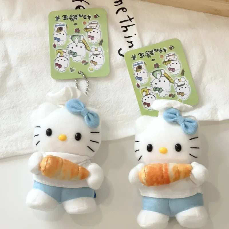Cartoon Hellokittys Plush Keychains chef croissant kawaii Sanrios Plush Doll vintage series bag Pendant Accessories Girl Toys