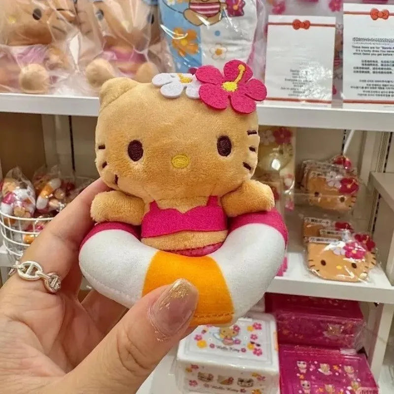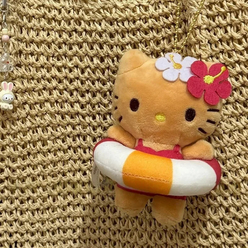 NEW Bikini hello Kittys Keychain Plush Doll Pendant Sanrios Hawaii Swim Ring Dark Skin Kitty Stuffed Doll Bag Accessories gift