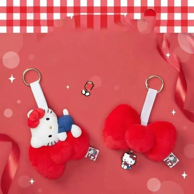 Kawaii Sanrio Hello Kitty 50Th Anniversary Bow Keychain Cartoon Plush Toys Backpack Pendant Peripheral Friends Birthday Gifts