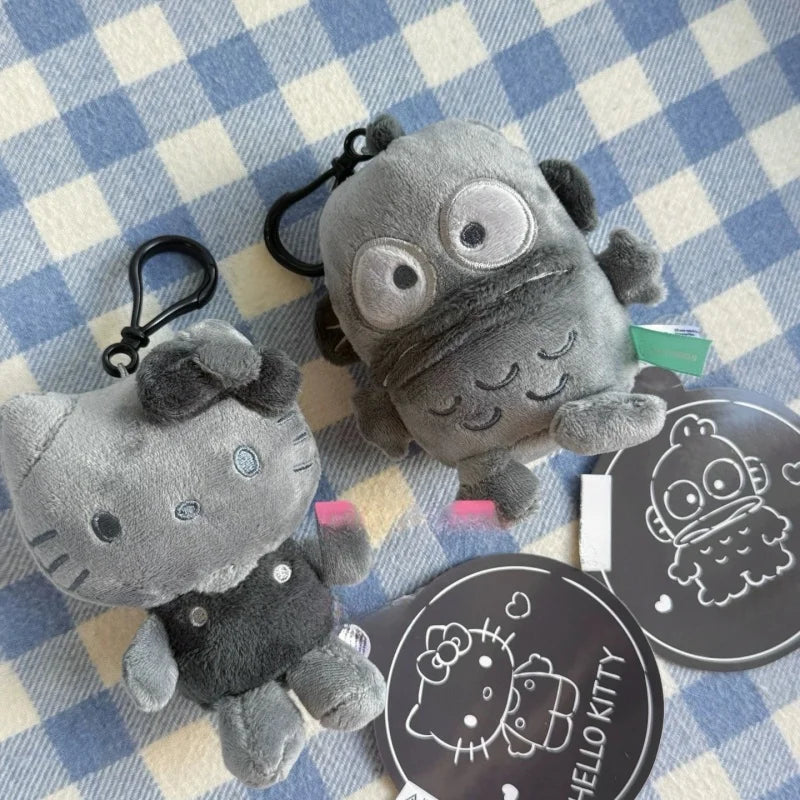 Kawaii Sanrio My Melody Hello Kitty Cartoon Plush Toys Black and White Keychain Backpack Pendant Decoration Girl Birthday Gift