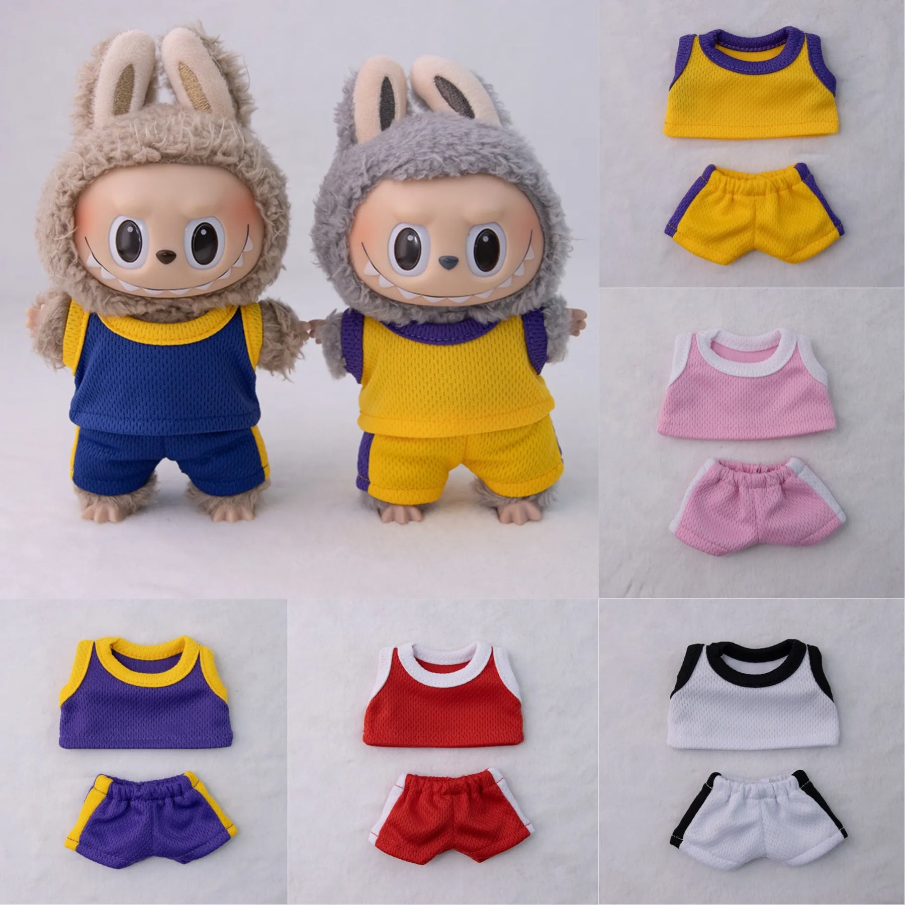15/17cm Labubu Basketball Jersey Set Vinyl Doll Clothes with Hoop Charm Sitting Party Sports Theme Plush Dress-Up Toy Outfit