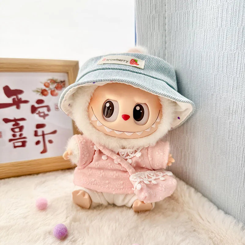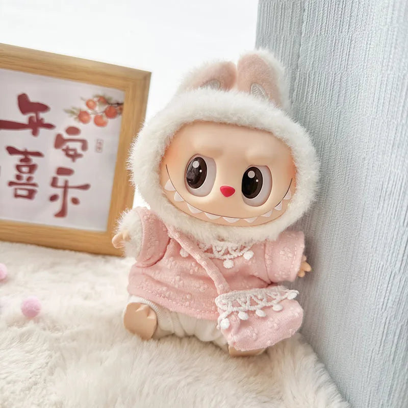17cm Labubu Idol Doll Plush Doll Pink Purple Four Petal Flower Cute Clothing Accessories Korean Kpop Exo Girl Gift