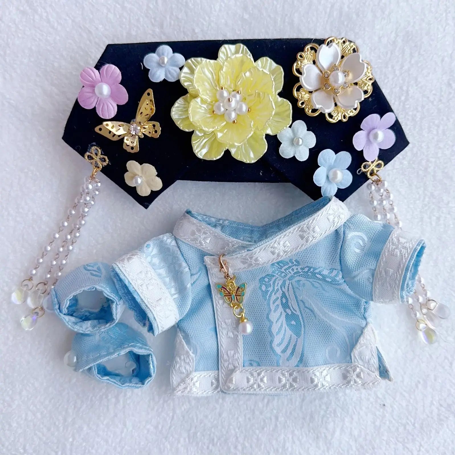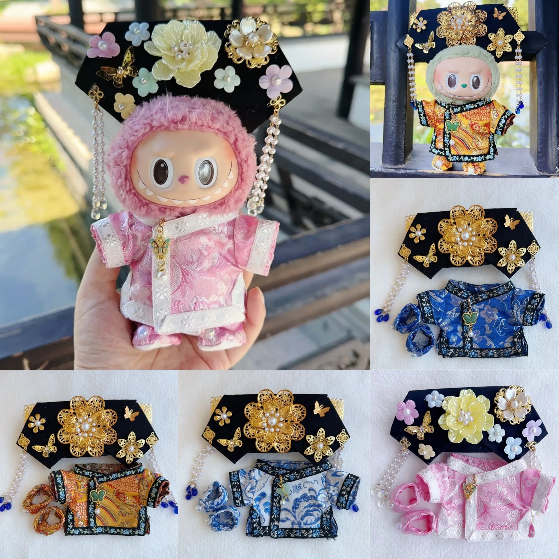 17cm Labubu Qipao Costume 1-3 Gen Fit Chinese Style Princess Outfits with Hairpieces Oriental Doll Clothes for Halloween Decor