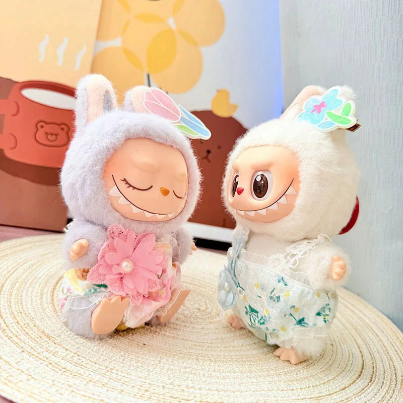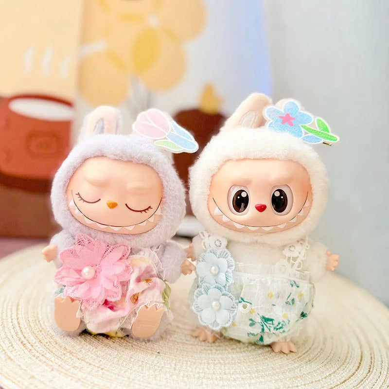 Labubu Doll Clothes Pink Floral Dream Jumpsuit Replacement 15/17cm Labubu I II Idol Dolls Sitting Party Accessories