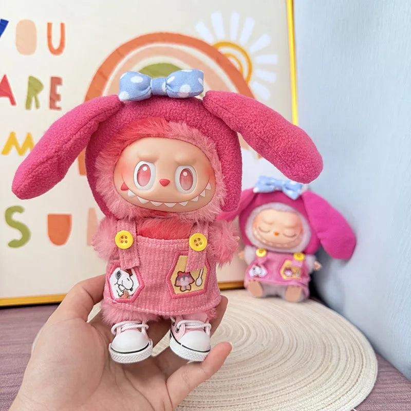 17cm Mini Plush Doll's Clothes Bear Rabbit Labubu I Ii Idol Dolls Sitting Party Clothing Outfit Bib Pants Overalls Accessories