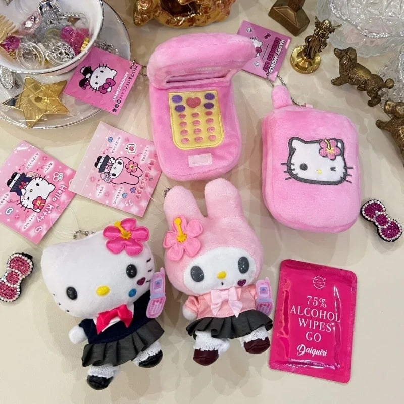 Kawaii my melody Plush Doll Keychain sanrio hello kitty Bag Accessories Heisei uniform HotGirls Y2K Kitty Cat Schoolbag Pendant