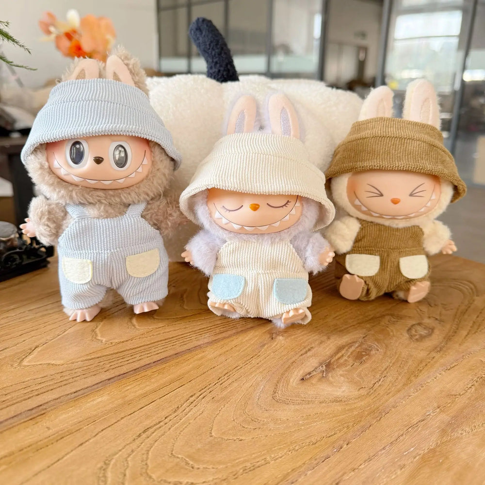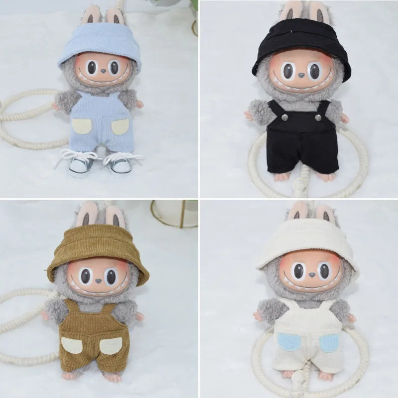 Labubu Doll Clothes Bucket Hat Overalls Dress Up Accessories 15/17cm Plush Doll'S Clothes Replacement