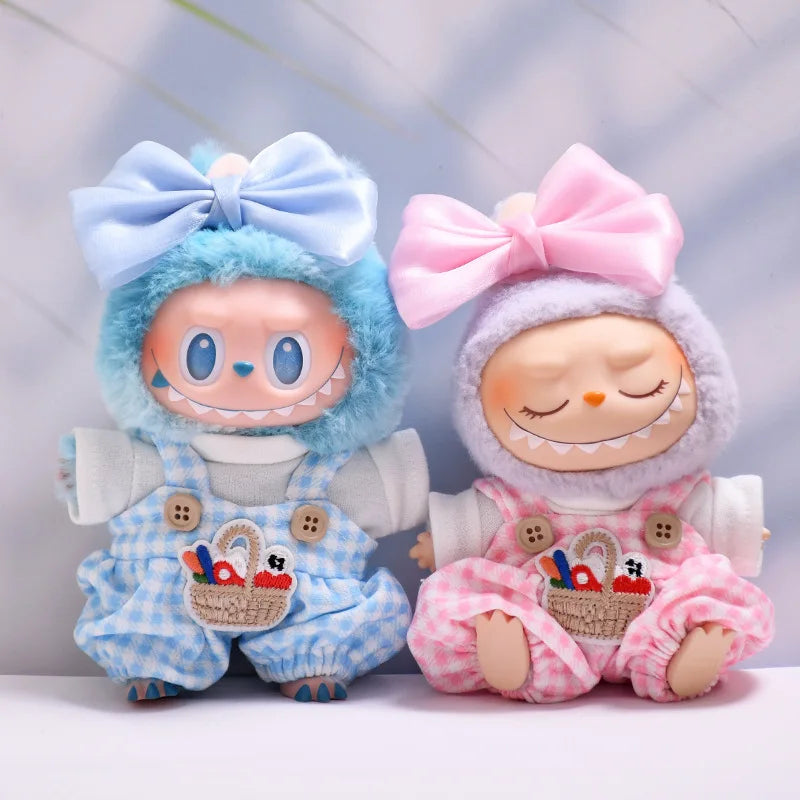 Labubu Doll Clothes Blue Plaid Overalls with Bow 15/17cm Plush Doll'S Clothes Labubu I II Idol Dolls Sitting Party Accessories