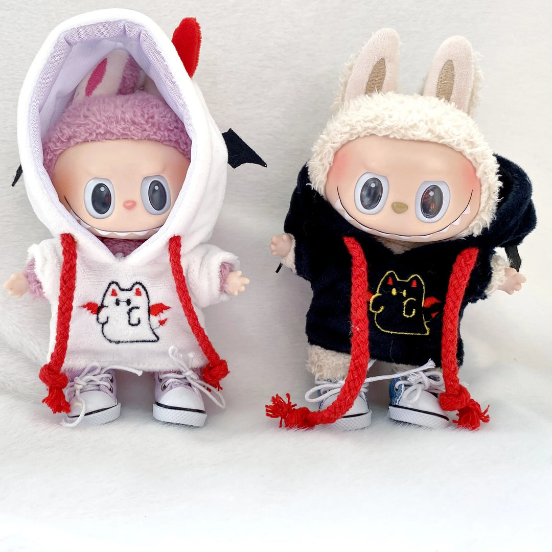 17cm Labubu II Idol Doll Sitting Party Halloween Bat Little Devil Hoodie Clothing Korean Kpop Exo Clothing DIY Gift