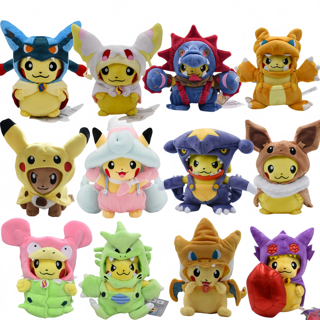 Cos Eevee Pikachu Cosplay Plush Toys Pikachu Peluche Mimikyu Lucario Charizard Garchomp Stuffed Animal Doll Collectible Gift