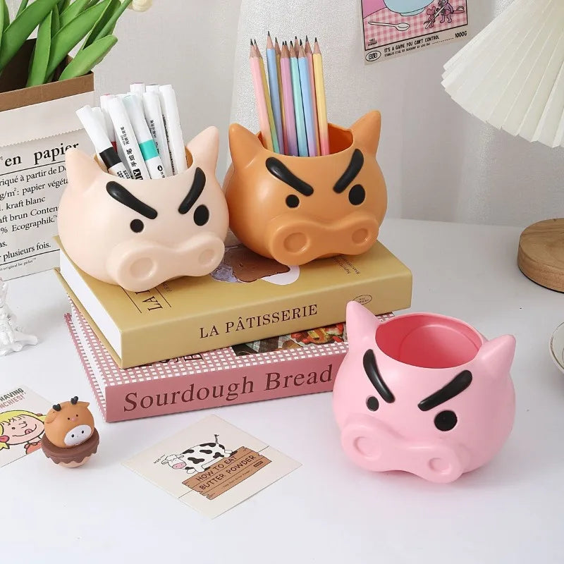 Cartoon Action Masked Pencil Holder Cute Stationery Makeup Brush Storage Box Creative Desktop Ornament Student Holiday Gift
