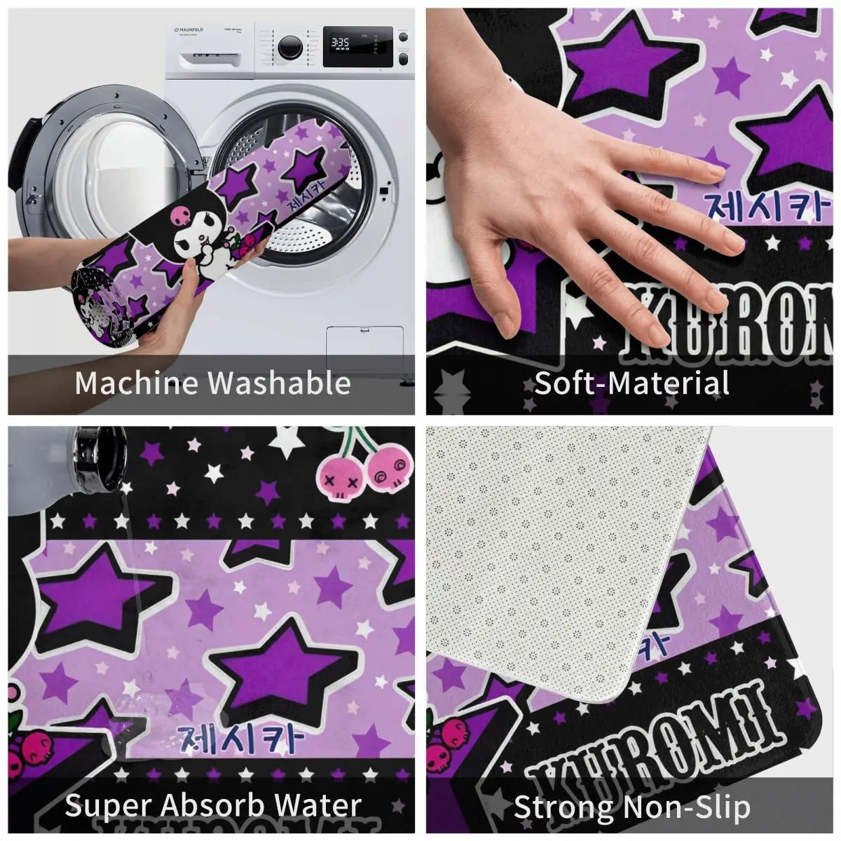 Funny Cute Kuromi Cartoon Bathroom Rugs Mat Super Soft Bath Rugs Mats Carpet Non-Slip for Shower Tub