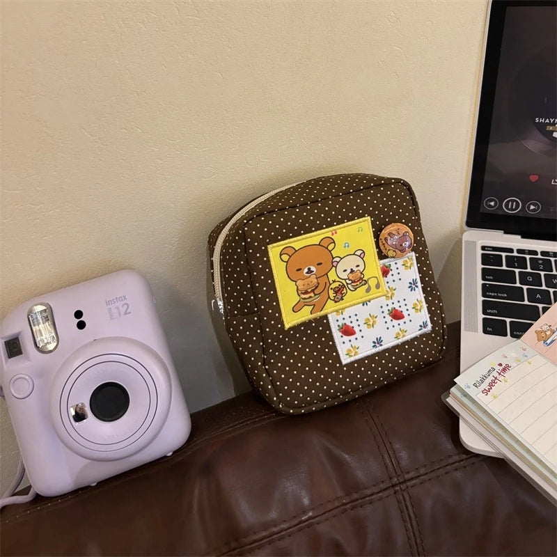 Kawaii Cute Bear Rilakkumas Cosmetic Bag Cartoon Cute Large-Capacity Portable Polaroid Storage Bag Travel Bag Storage Artifact