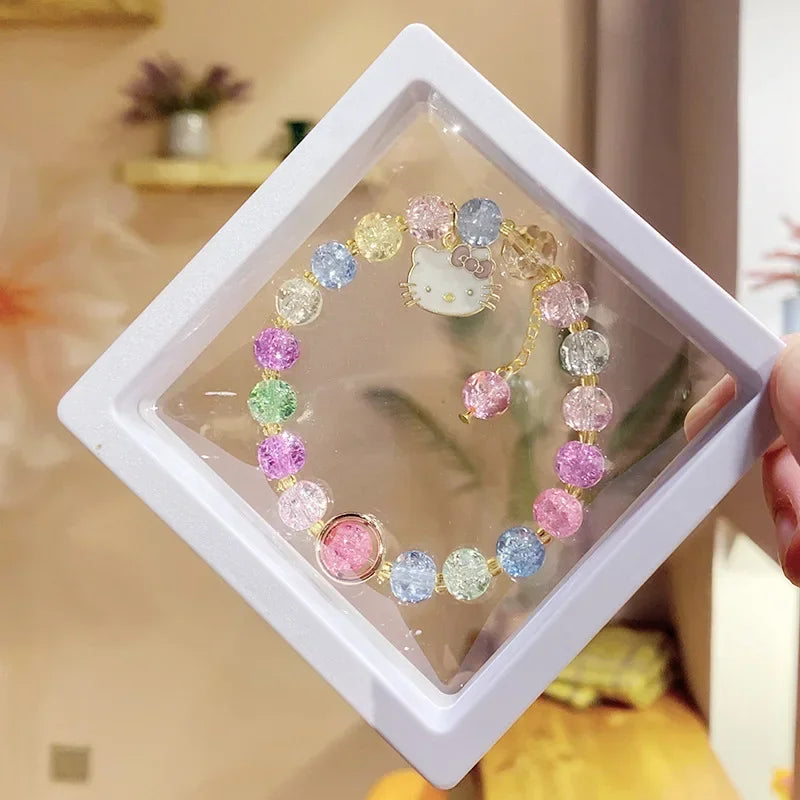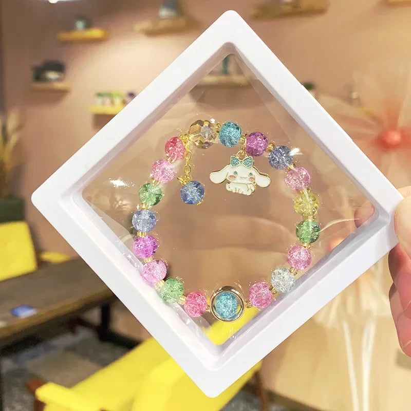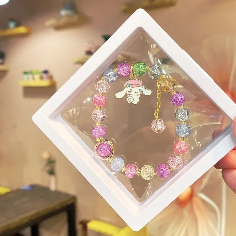 Kawaii Hello Kitty Beaded Bracelet Kuromi Cinnamoroll Lotso Colorful Cartoon Box Jewelry Girls Birthday Gift